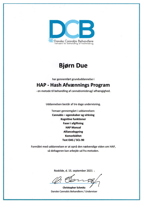 Jeg har gennem årene uddannet mig inden for flere retninger, så jeg kan tilpasse min tilgang til den enkelte. Her er nogle af de vigtigste certificeringer: